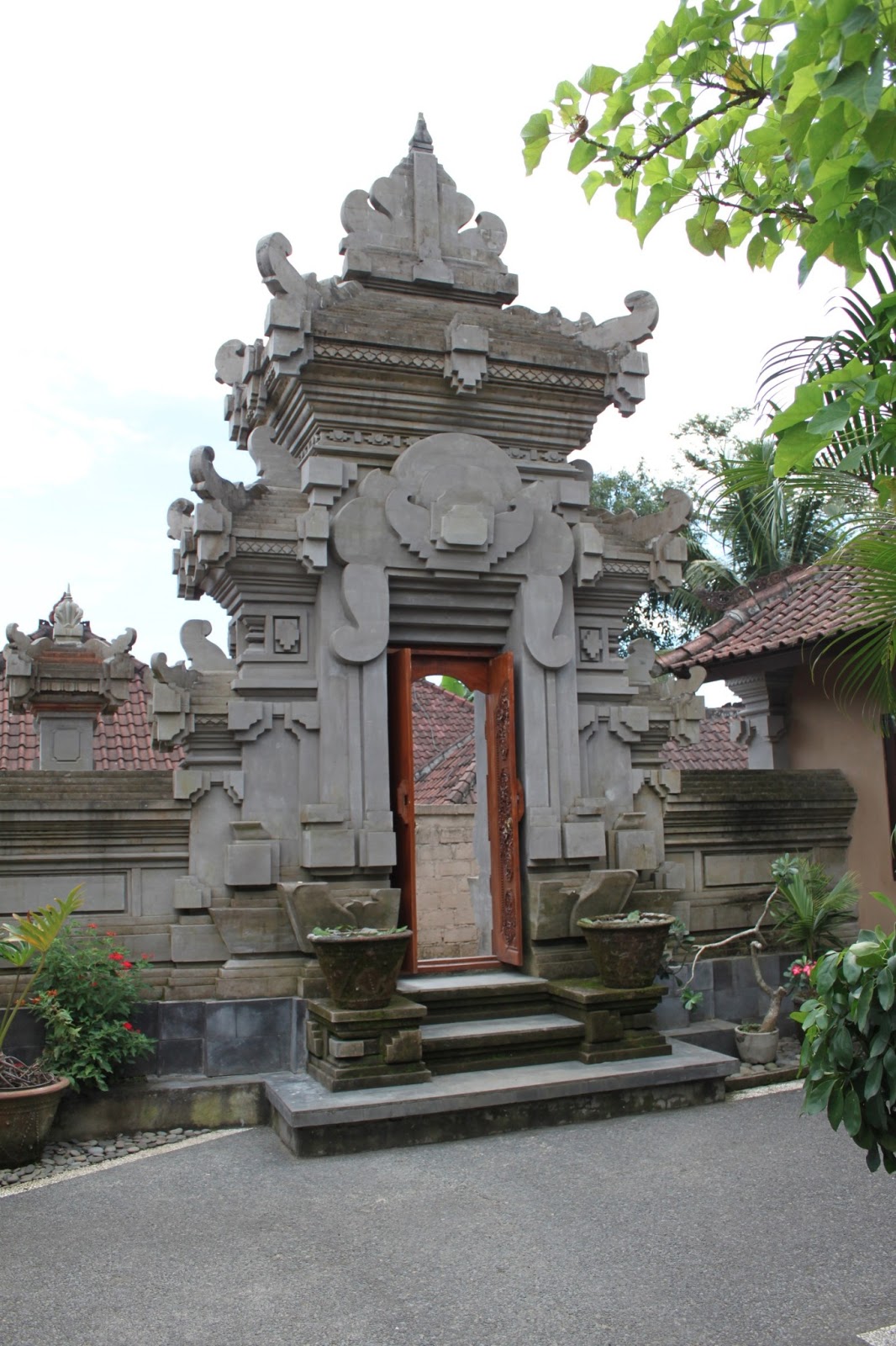 | Balinese families live in small, walled compounds. One of the fun parts of the class is that we were in the families home for the day. This is the extravagant main gate for the family compound. |