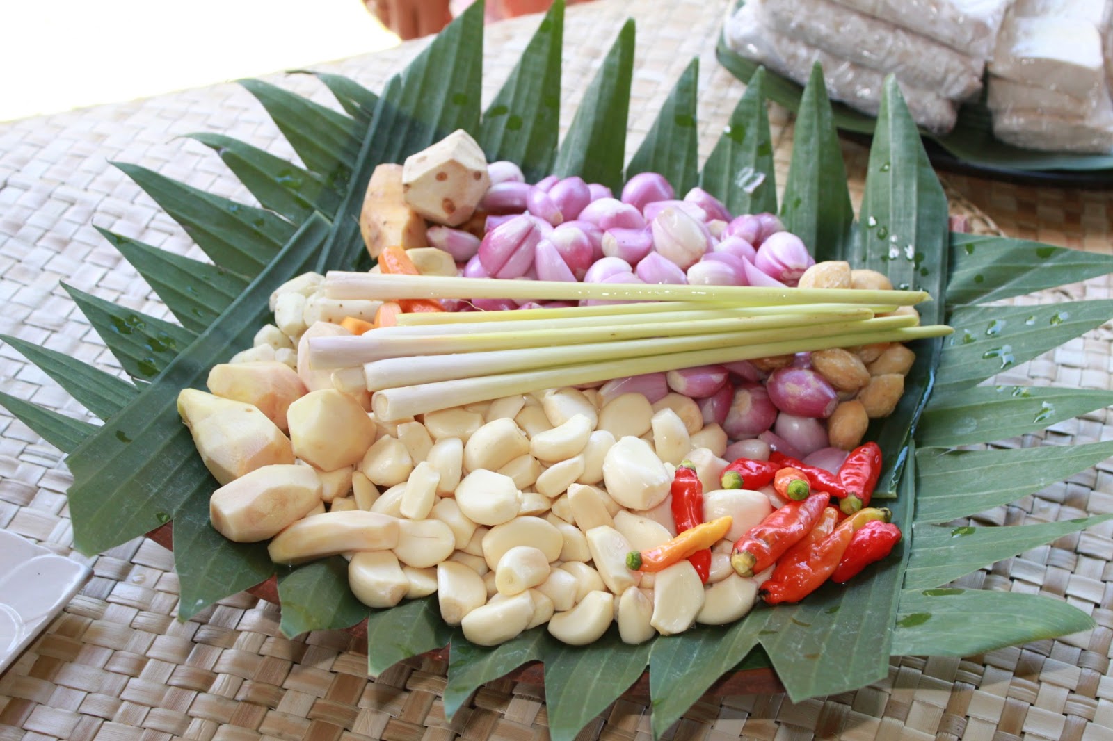 | This mortar and pestle are used to make the yellow paste that was used in a lot of the dishes. There was about 17 ingredients in the paste. |