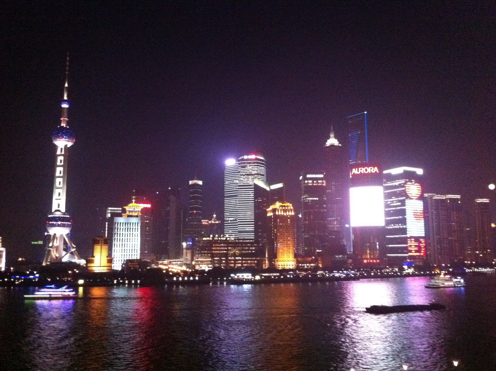 | Just an amazing view from the restaurant which was on the 7th floor of a building at the Bund. It was great to see everything in the daylight and then after dinner get to see it all lit up. |